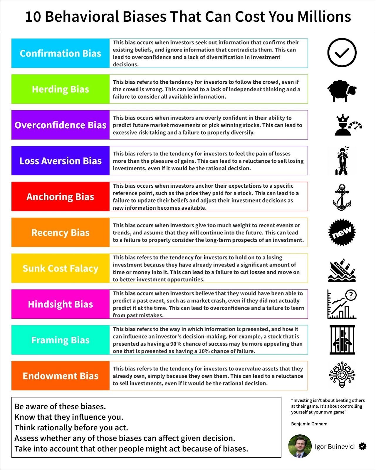Here are the Top 10 Behavioral Biases wrecking investors worldwide: